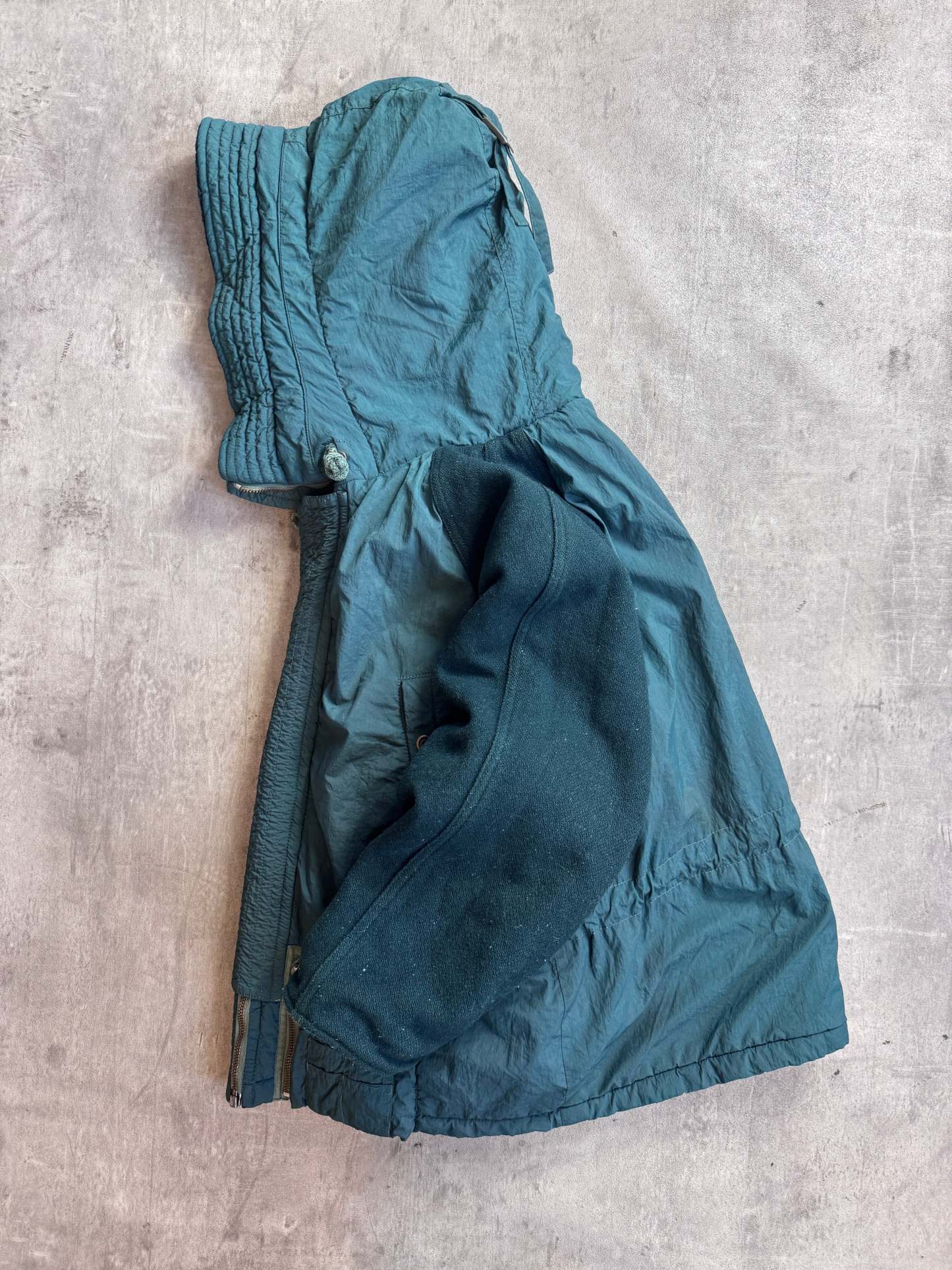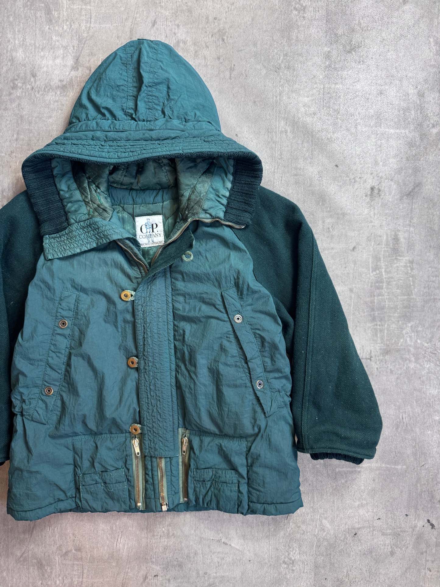 A true archive C.P. Company grail from Spring/Summer 1987, this hooded bomber captures the brand at its most foundational — utilitarian, innovative, and built with that unmistakable late-80s Italian sportswear DNA. With a functional hooded design and classic bomber proportions, it’s a rare piece that bridges military-inspired practicality with the early technical language C.P. Company helped pioneer.