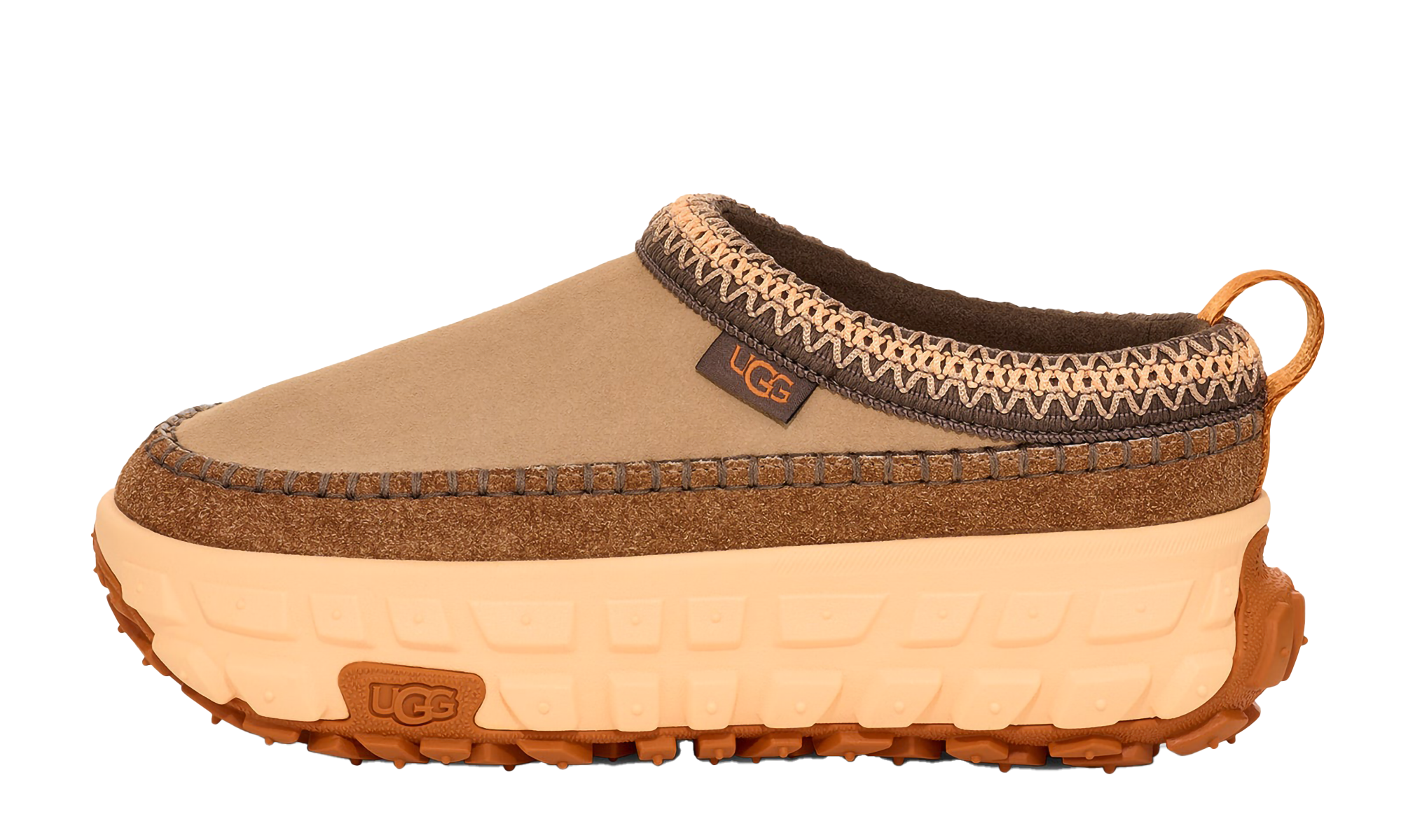 Step into comfort redefined with the Venture Daze Slippers 'Sand / Apricot'. These women's slippers blend cozy style with a rugged edge, featuring a soft suede upper in a neutral Sand hue contrasted by bright Apricot accents. The plush lining delivers signature UGG warmth, while the chunky, durable outsole provides maximum cushioning and traction. Perfect for lounging or light outdoor ventures, these slippers are designed for all-day effortless wear.