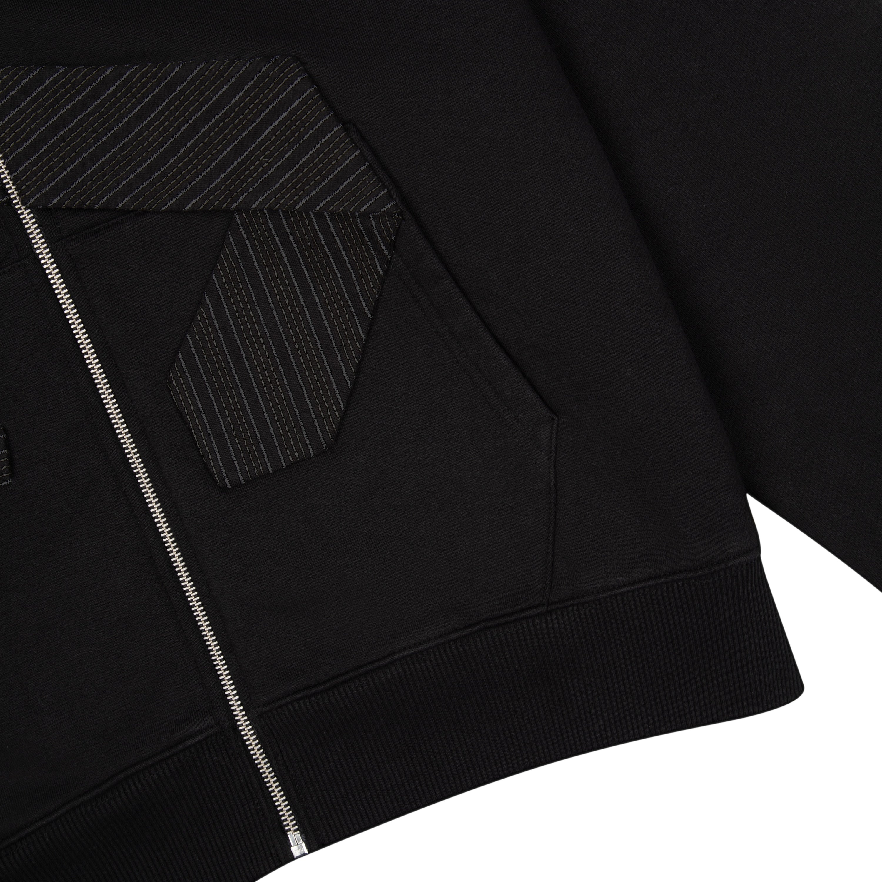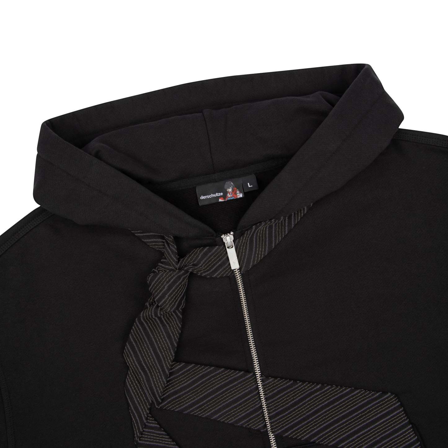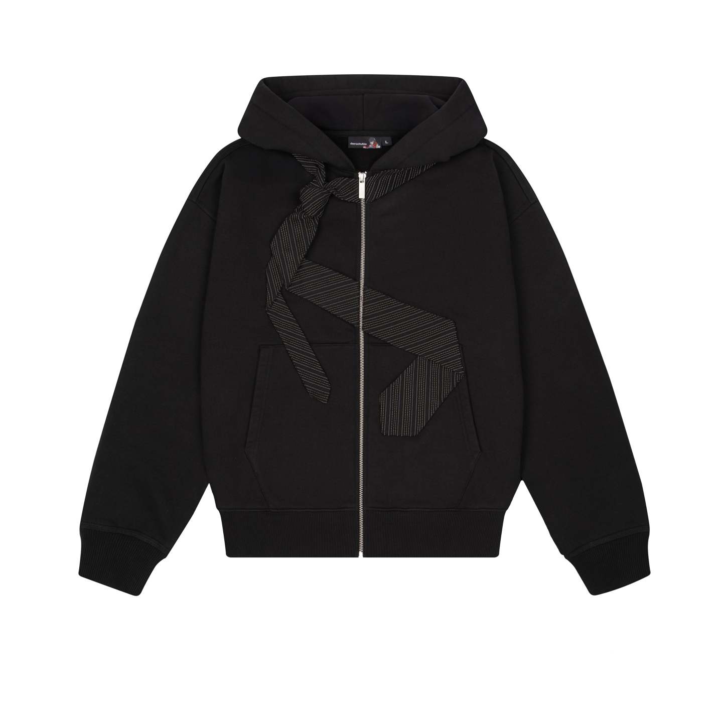 460gsm / 100% preshrunk cotton / embroidered tie patch from jersey fabric on front / embroidery on back / with double-slided YKK zipper / without cord / fits true to size