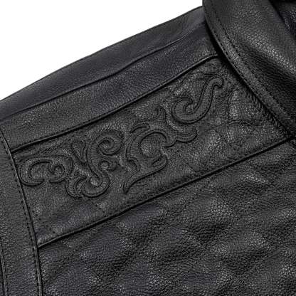 heavy real cow leather / 100% Polyester Inner linning / YKK zipper / embossed back design / quilted sleeves