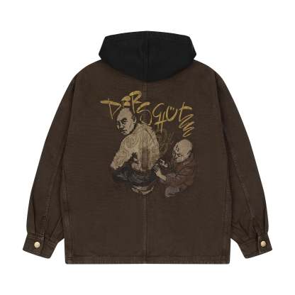 430 gsm canvas fabric / 460gsm brushed cotton hood / 100% cotton / embroidery on back and collar / pockets on front / custom buttons / fits true to size