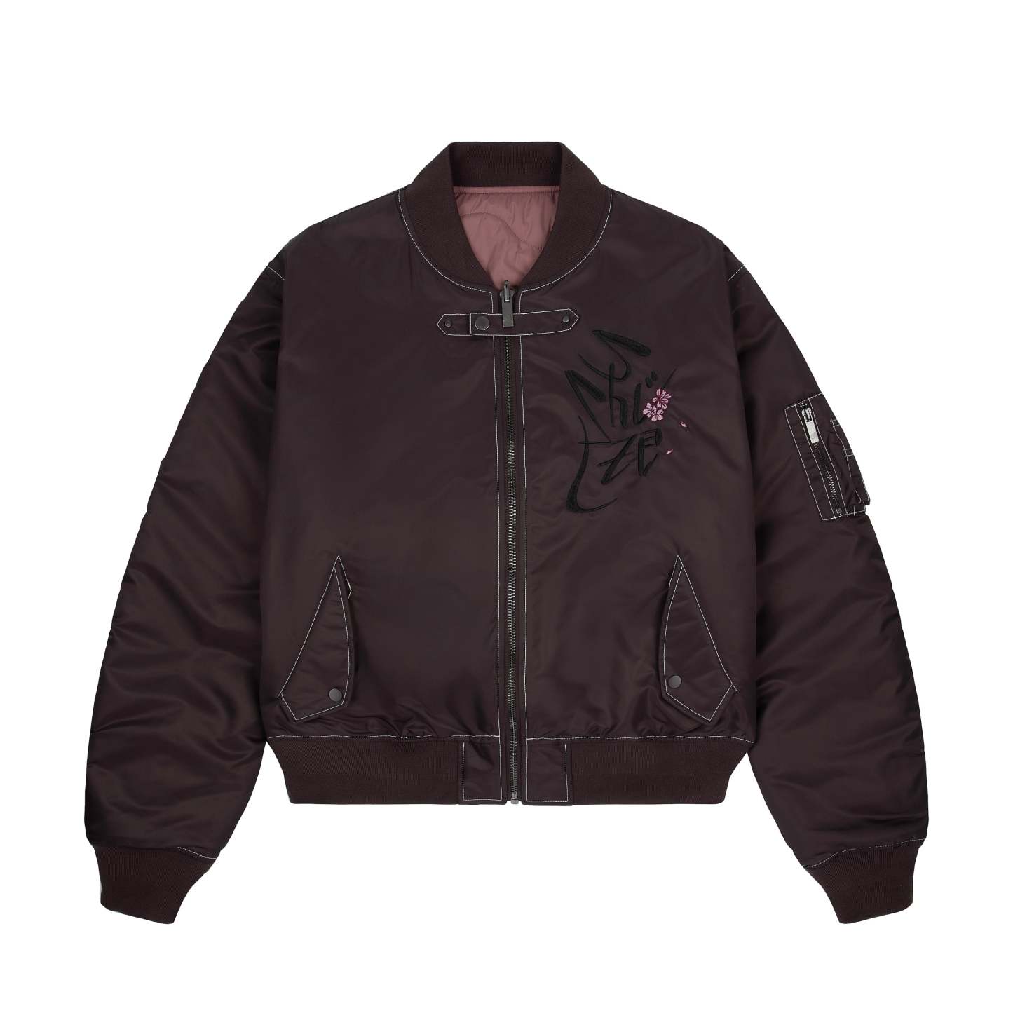 160gsm parachute fabric / 100% nylon / wind- and waterproof / capitone polyester lining / fiber filling / reversible / ribbed collar, hem and cuffs / embroidery on front and back / draping on back / with JKJ zipper / custom buttons / fits true to size