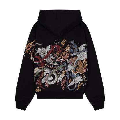 460gsm / 100% preshrunk cotton / embroidered patch on front / embroidery on back and sleeves / with double-slided YKK zipper / without cord / fits true to size