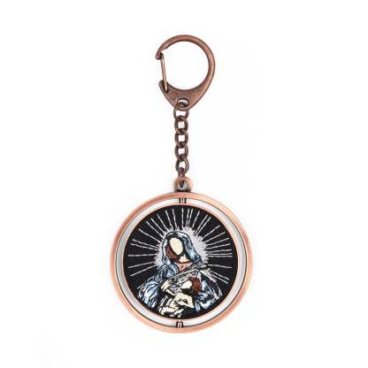 antique dark bronze / embroidered on front and back / with rotation mechanism / measurements: 6cm x 6cm x 0,5cm