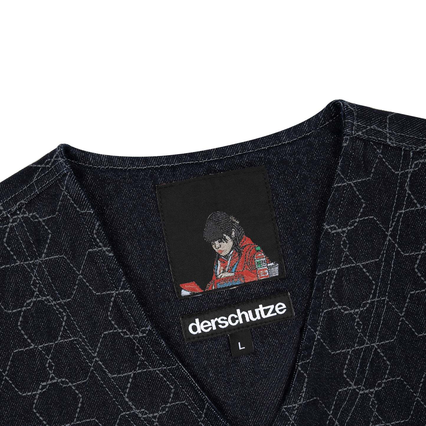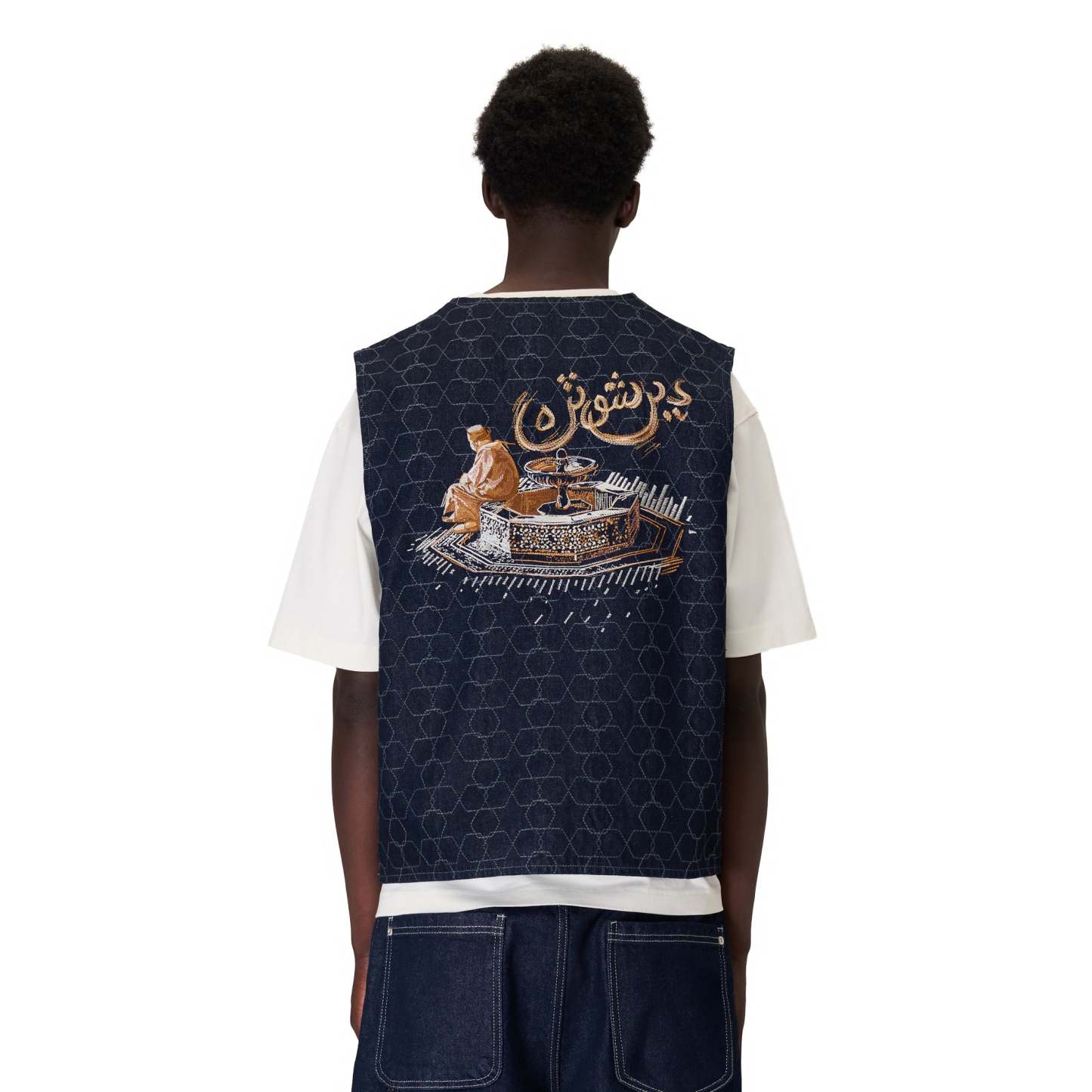 14,5oz denim / 100% cotton / fully capitone patterned embroidered denim / embroidery on back / custom buttons / fits true to size