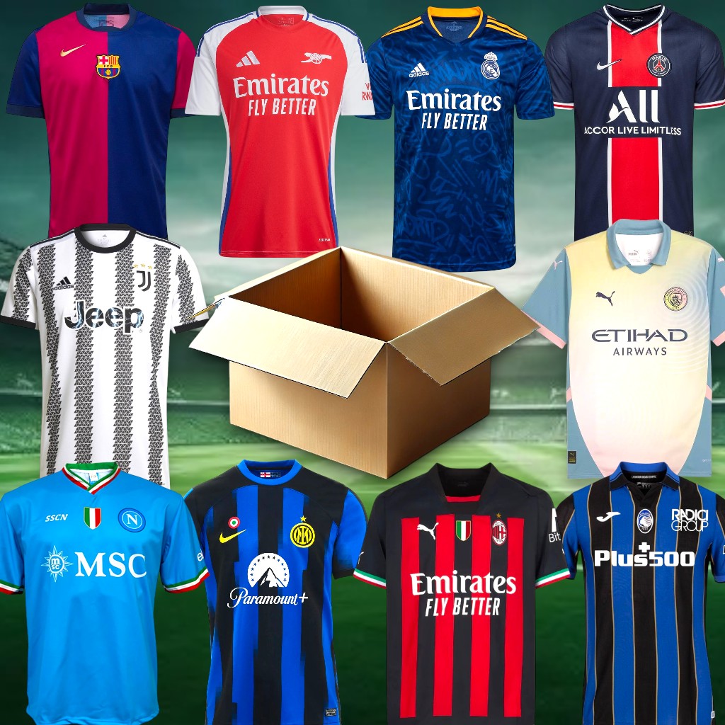 Scopri la nostra Football Box: un mix esclusivo di 20 maglie da calcio assortite, perfette per gli amanti del calcio, i rivenditori vintage o chi cerca affari incredibili!