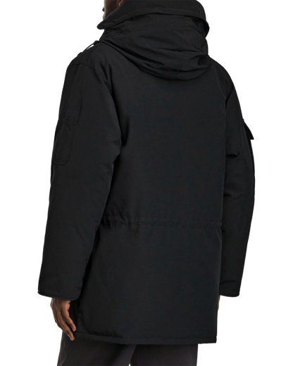Introducing the Canada Goose Expedition Parka, designed for the modern adventurer in mind. This black parka is crafted in an oversized fit for optimal movement, with an adjustable down-filled hood for added warmth and protection against the elements. The chin guard is lined with tricot fabric for softness, while the webbing grab strap at the upper back proudly displays the 'Expedition' emblem patch.Featuring a waist with an interior drawcord for a customizable fit, recessed rib-knit cuffs for added comfort and heat retention, and a nylon elasticized snow skirt for extra protection, this parka is built for performance. The placket with Velcro® closures over the 2-way zipper allows for added range of motion or ventilation, while the storm flap adds an extra layer of defense.With 6 exterior pockets and 3 interior pockets, this parka provides ample storage for all your essentials. Made with a composition of 83% polyester and 17% cotton, filled with responsibly sourced 625 fill power down, this parka is both functional and sustainable. Please note that our products are 100% genuine, sourced from trusted independent suppliers. Made in Canada, this Expedition Parka embodies the spirit of adventure with the quality and craftsmanship that Canada Goose is known for.