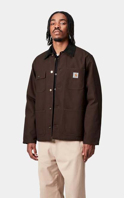 The Michigan Coat is constructed in Carhartt WIP´s classic, hard-wearing Dearborn Canvas, which has then been treated to make it water repellent. This canvas fabric will soften with wear, creating a jacket with a fit that is unique to you. Contrast button and rivet detailing, which draws from a classic workwear aesthetic. Blanket lined body retains warmth during the winter months.