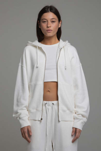 Meet our new & improved zip hoodie—slightly cropped, & without the thermal lining for year-round comfort. Made from the same 100% organic cotton french terry you know and love. Other details include a double-lined hood & a bubbled fit from a slight cinch at the hem.