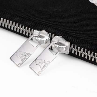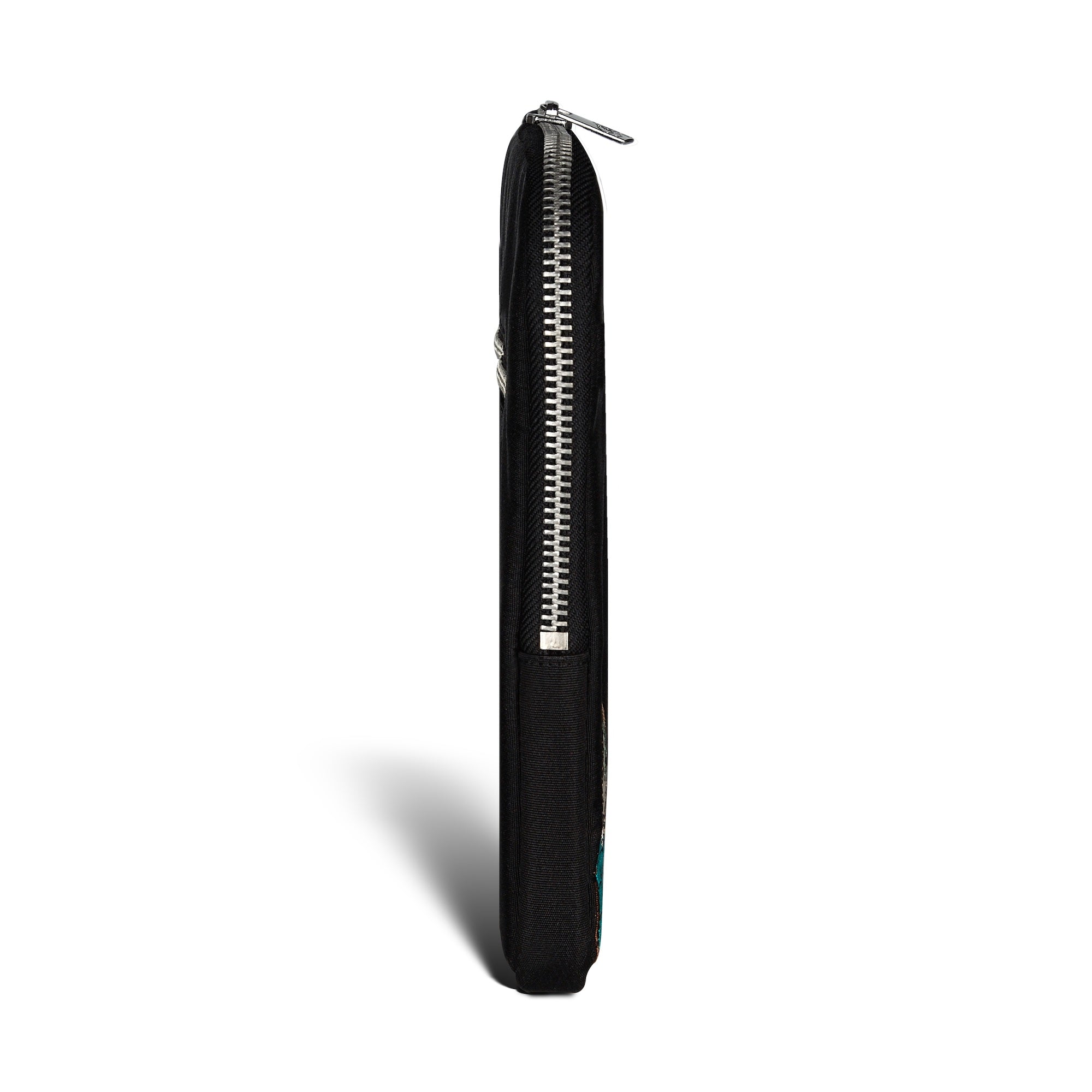 canvas/ heavy custom zippers/ embroidered front design/ only fits up to 13 inch macbooks