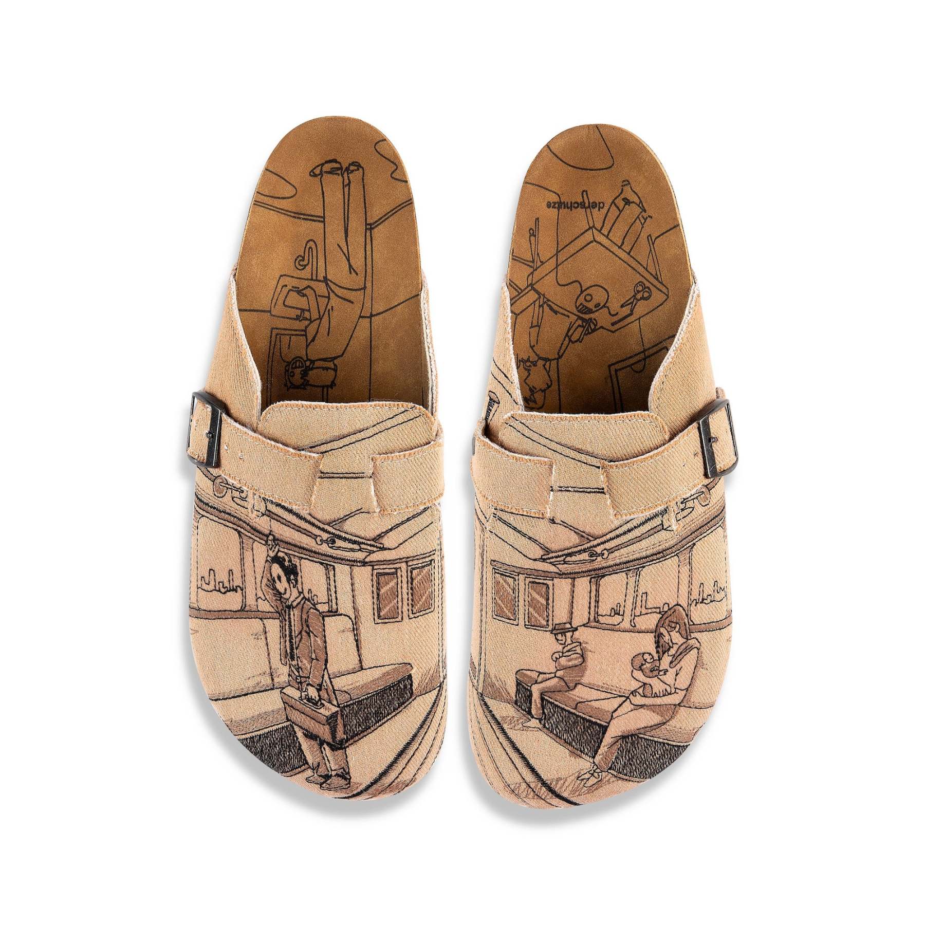 beige canvas/ embroidered side panels/ embroidered logo on heel/ manufactured in Türkiye