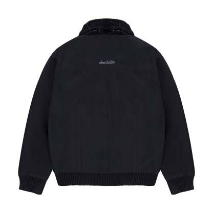 parachute fabric / fiber filling / collar from velvet fabric / ribbed hem and cuffs / embroidered collar with custom pins / embroidery on back / fits true to size