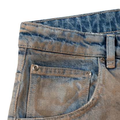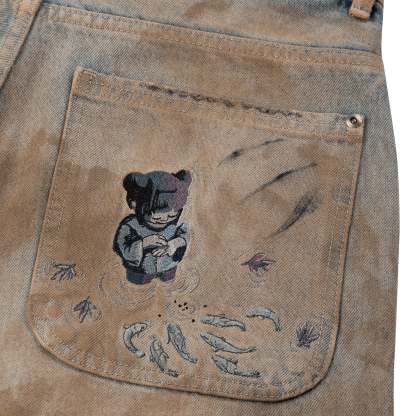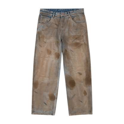14,5oz denim / 100% cotton / embroidery on front and back pocket / embroidered leather patch / mud wash / baggy fit