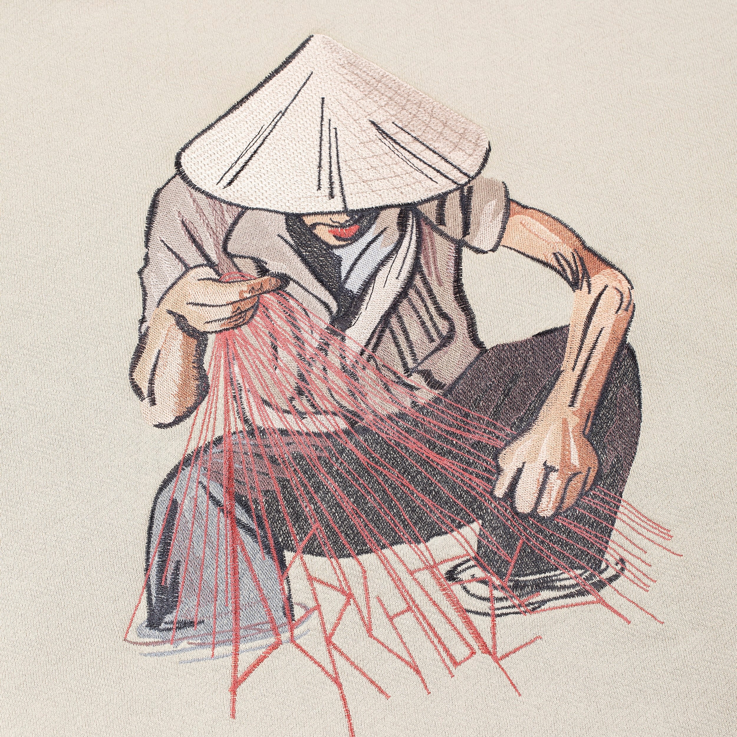 480gsm French terry / 200 000+ stitches embroidery on back / 100% preshrunk cotton / washed effect / reverse fabric panel / embroidery on back / fits true to size