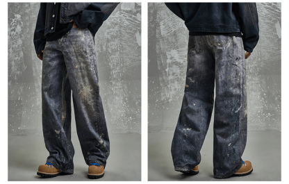 Made from premium denim, these jeans feature bold graffiti prints and distressed details, combining urban streetwear with artistic flair.