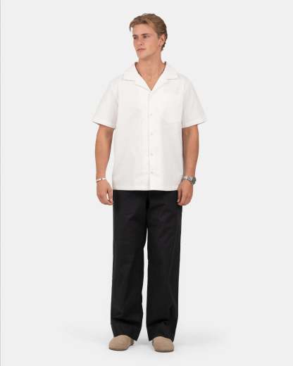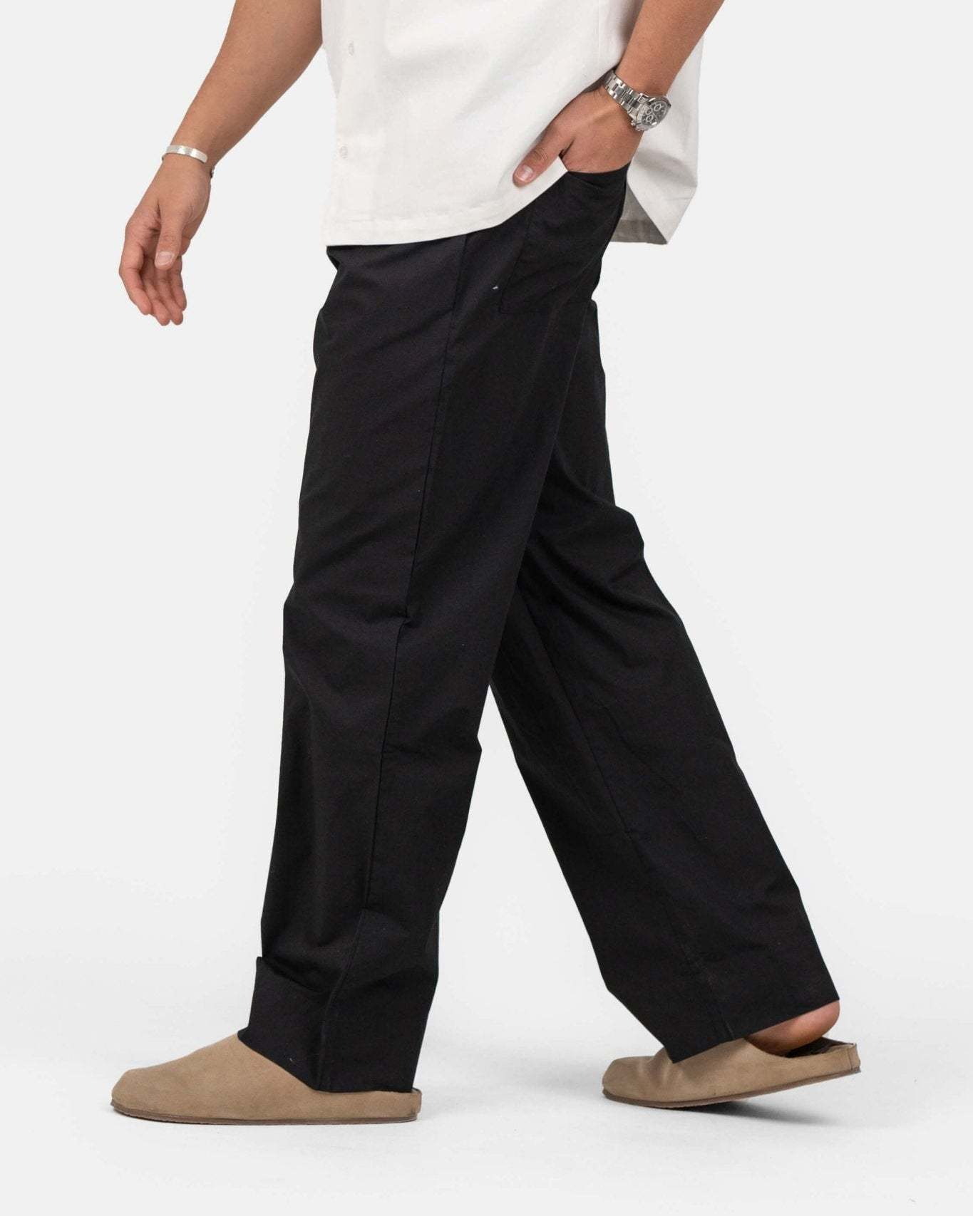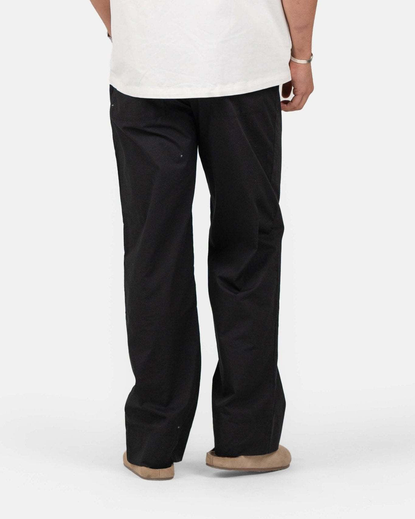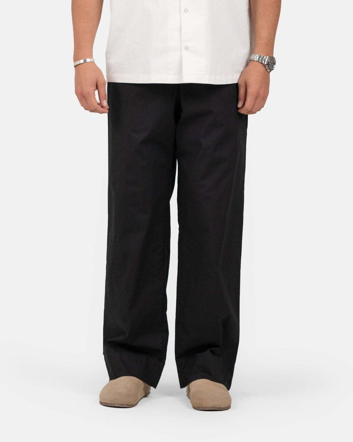 Disse l?st siddende bomuldsbukser i sort tilbyder komfort og stil til enhver lejlighed. Med et bindeb?nd foran og elastisk kant kombinerer bukserne lethed med en moderne stil. De er luftige og lette og har praktiske lommer p? siden samt to baglommer. F?s ogs? i .