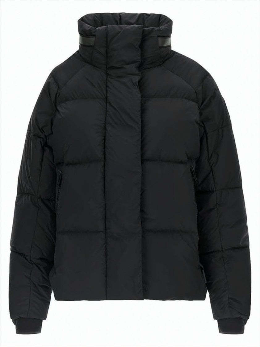 This Canada Goose quilted padded jacket is crafted with a luxurious matte finish, designed for superior warmth and style. Featuring a high collar, hood, and a front zip closure concealed by a placket, it embodies functionality with zippered side pockets and ribbed cuffs. With a slightly cropped fit, this jacket is perfect for a chic, casual look.