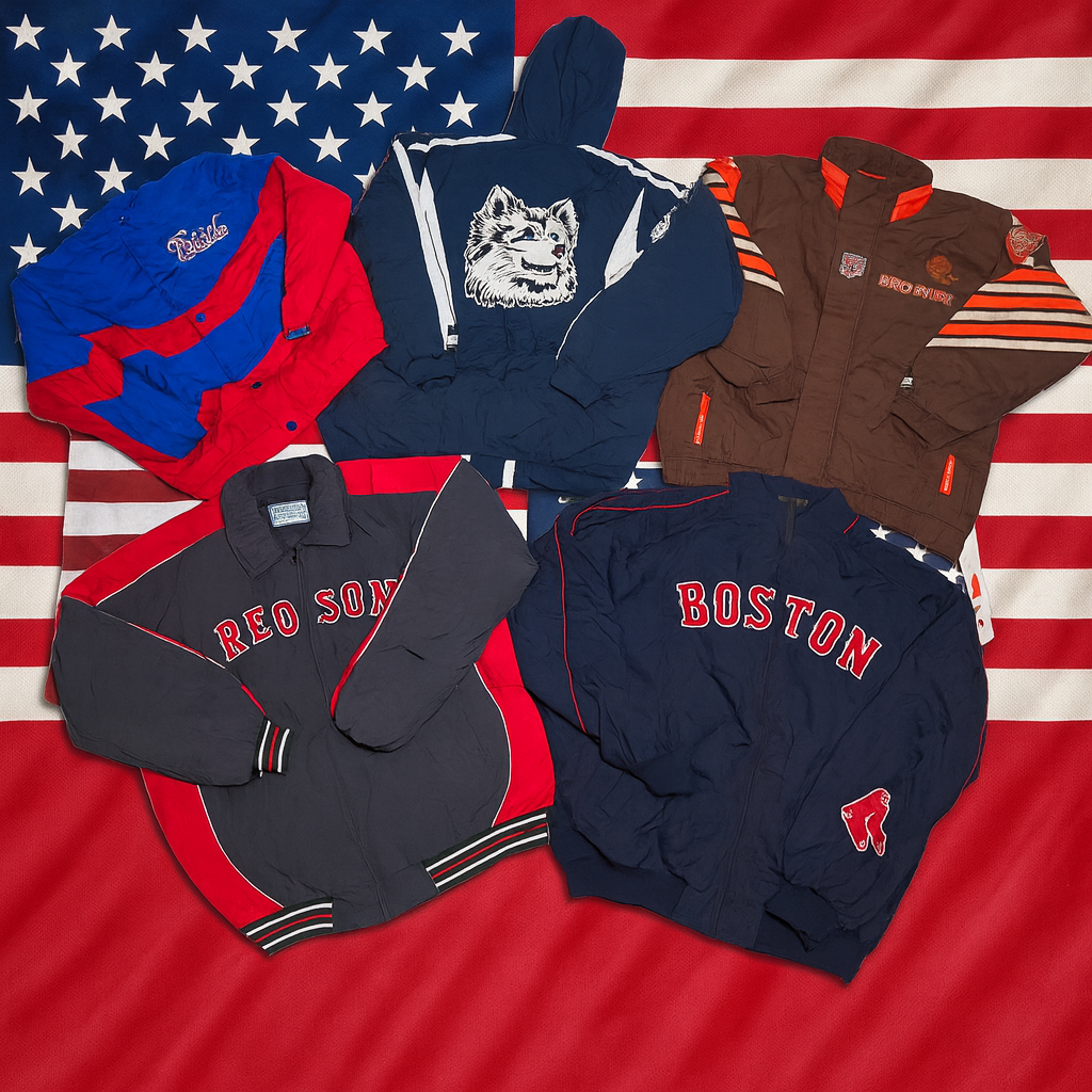 Box da 5 giacche vintage sportive assortite (NFL – MLB – College).