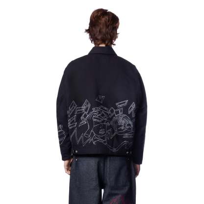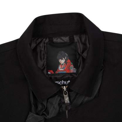 11,3oz canvas fabric / 100% cotton / embroidered tie patch from tie fabric on front / embroidery on back / capitone polyester lining / pocket inside / with YKK zipper / custom buttons / fits true to size