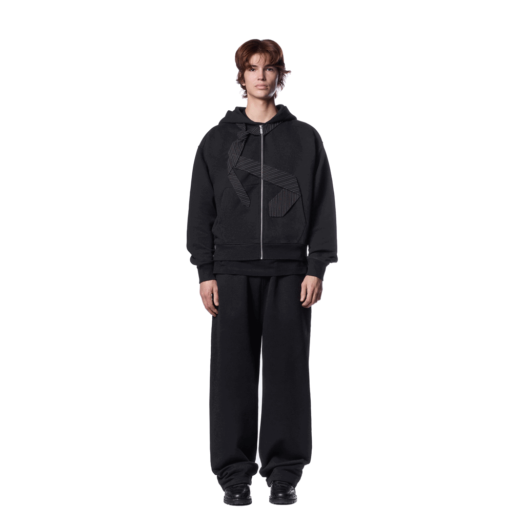 460gsm / 100% preshrunk cotton / embroidered tie patch from jersey fabric on front / embroidery on back / with double-slided YKK zipper / without cord / fits true to size