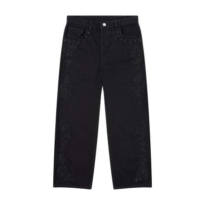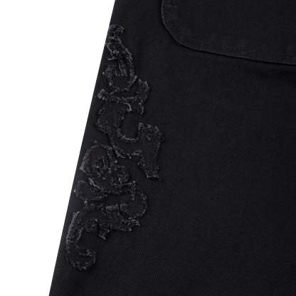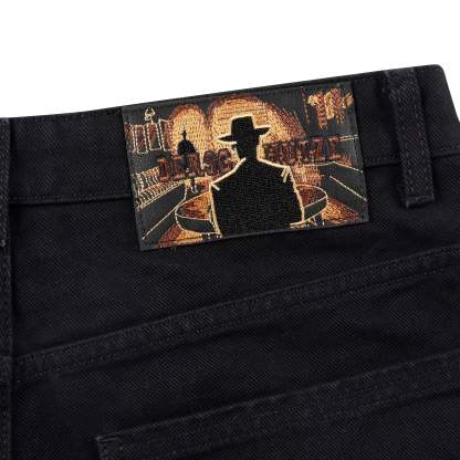 14,5oz denim / 100% cotton / embroidery on denim patches on front and back / embroidered leather patch / baggy fit